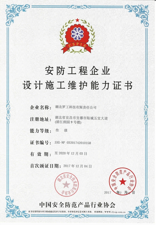 安防工程企业设计施工维护能力证书