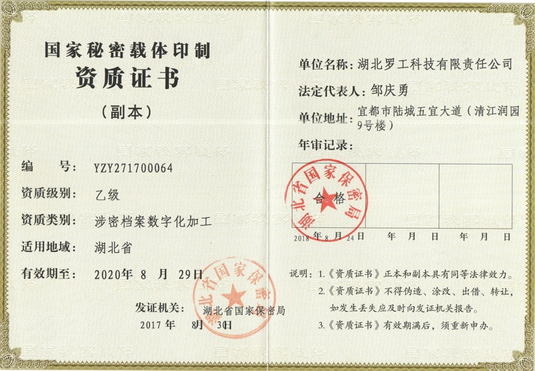 国际秘密载体印刷资质证书