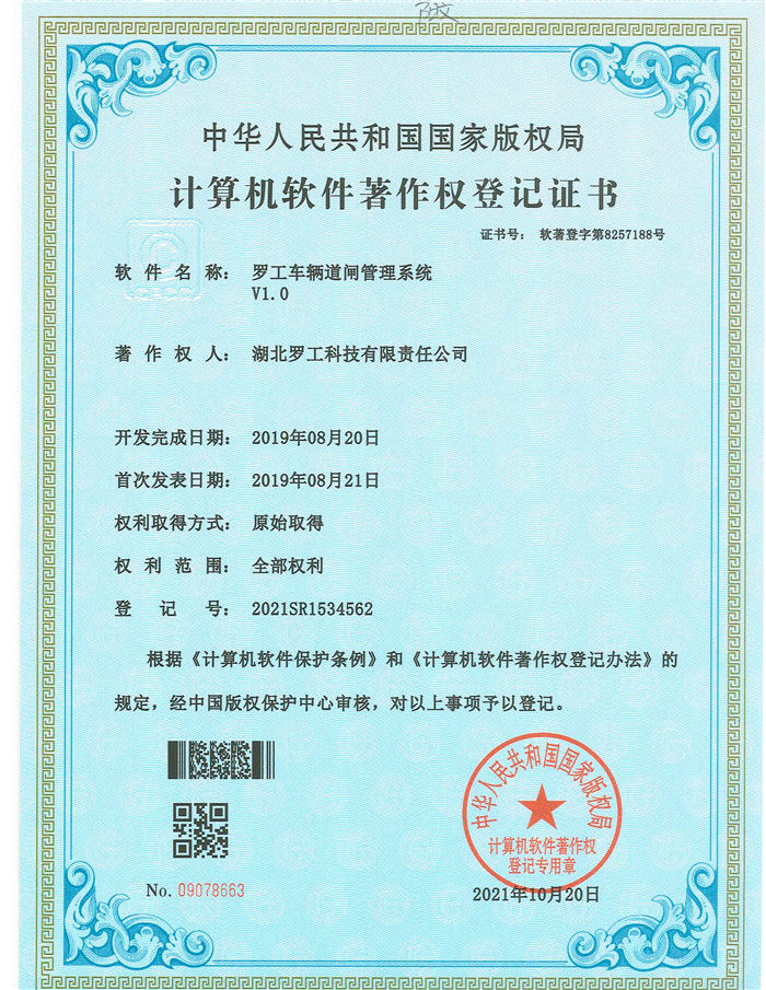 罗工车辆道闸管理系统V1.0软著