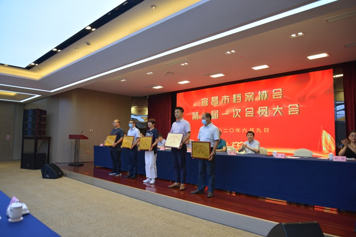 协会筹备组副组长杨传科宣读《章程》草案,审议《协会年度会费测算说明》及《会费标准和管理办法》草案。会员单位积极参选,宜昌市西陵区云集街道党工委书记贾胜宣读宜昌市档案协会党支部成立批文,宣布选举结果,为当选会长湖北云档科技有限公司总经理白玲授牌。为常务副会长湖北清江档案技术服务有限公司总经理杨传科、副会长湖北罗工科技有限责任公司经理罗时红、宜昌慧文文化传播有限公司总经理李强、秘书长宜昌金圳档案服务有限公司总经理邓金玉授牌,随后秘书长宣读《宜昌市档案协会自律公约》。
